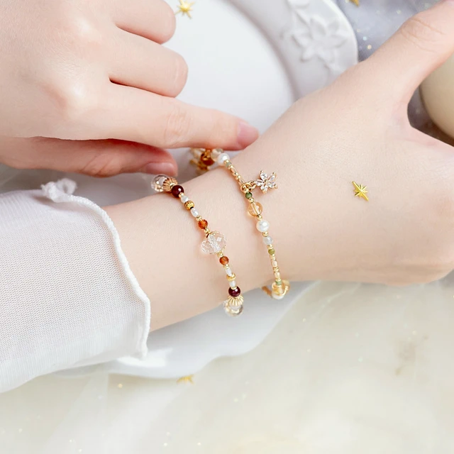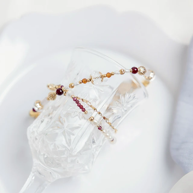 【Ficelle輕珠寶】追逐光影的凡人 • 秋|葡萄石 淡水珍珠 橙石榴石 粉晶 緬甸玉 鋯石 黃銅鍍18K金 雙層手鍊