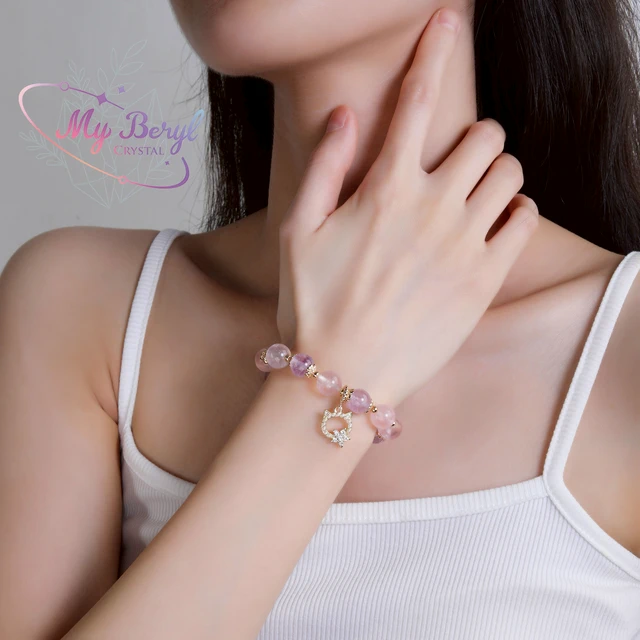 【My Beryl 水晶】粉晶 × 葡萄石 × 草莓晶兔扣|甜蜜守護手鍊