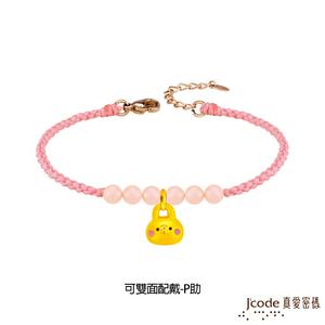 【J'code真愛密碼金飾】 卡娜赫拉的小動物-愛戀P助和粉紅兔兔黃金/粉晶編織手鍊