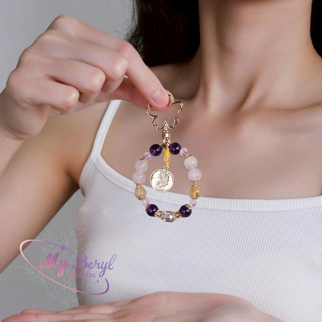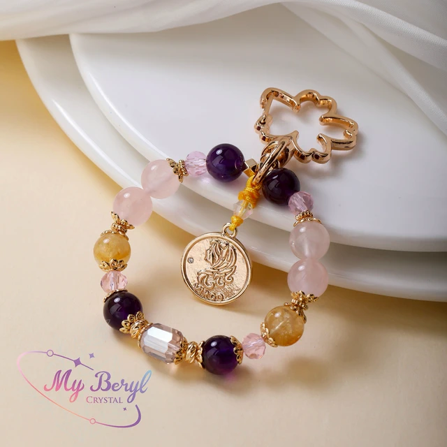 【My Beryl 水晶】粉晶 × 紫水晶 × 黃水晶|摩羯座守護吊飾