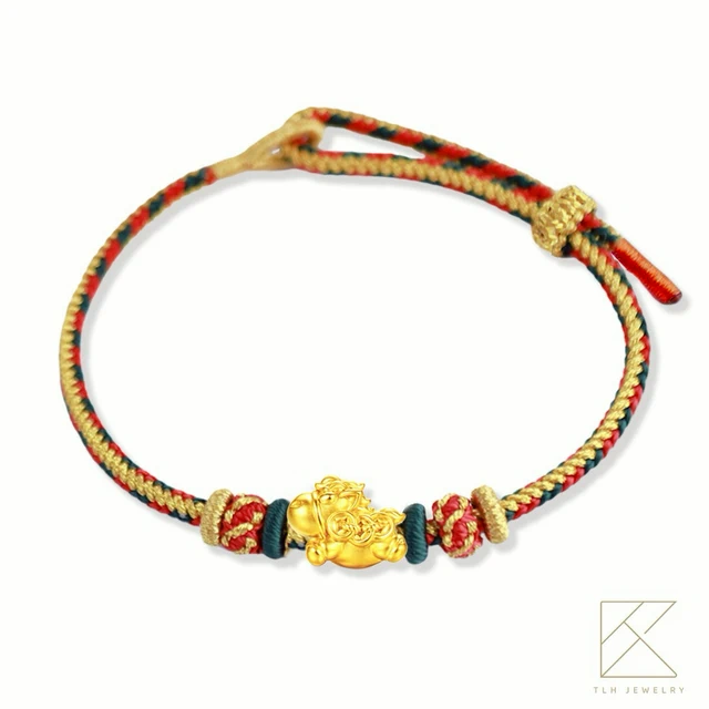 【快速出貨】【TLH】黃金墜 純金999 多選 馬年五彩繩開運編織手鍊 約重0.02錢±0.01 (過爐、純金999、彌月禮、招財、平安)