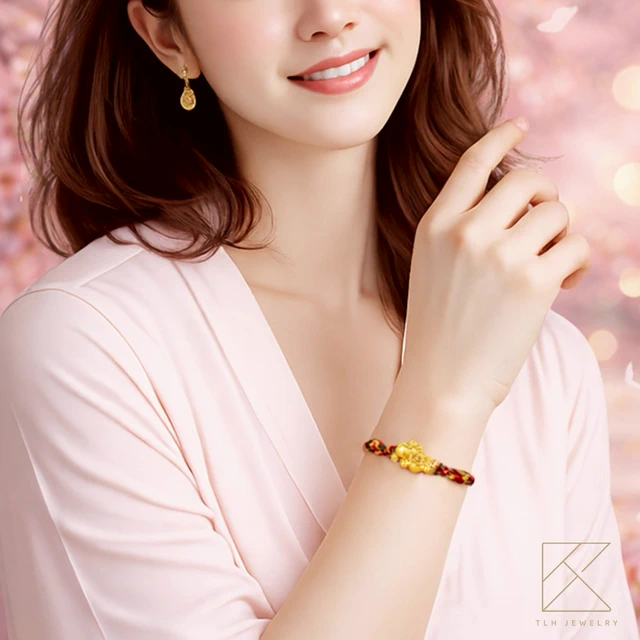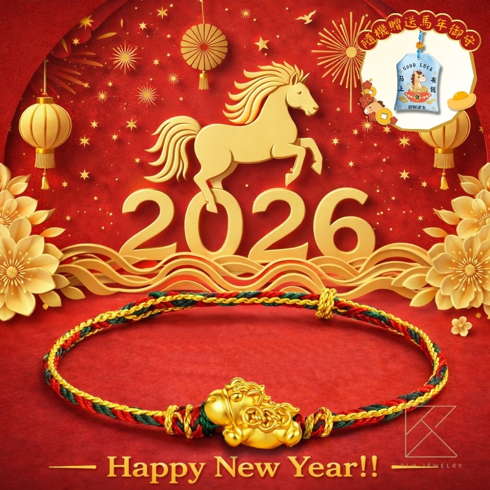 【快速出貨】【TLH】 黃金墜編織手鍊 純金999 花迎新歲 馬上開運 約重0.04錢±0.01 隨機贈送馬年御守 (馬年 過年)