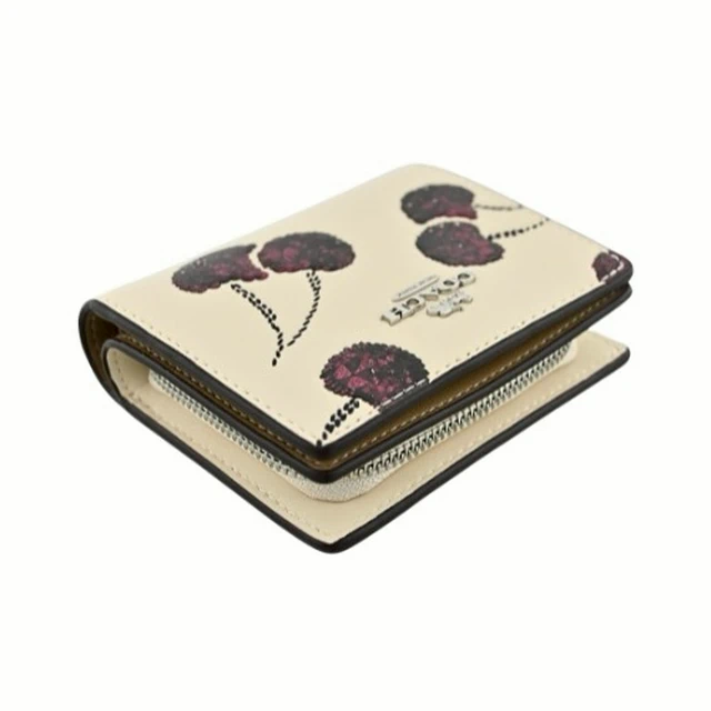 [平輸版] 【COACH】牛奶糖色防刮全皮字牌釦式雙摺短夾 真品平輸