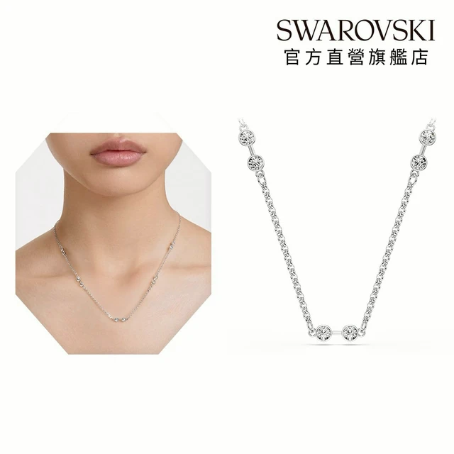 【SWAROVSKI 施華洛世奇】Una 項鏈 圓形切割 白色 鍍玫瑰金色