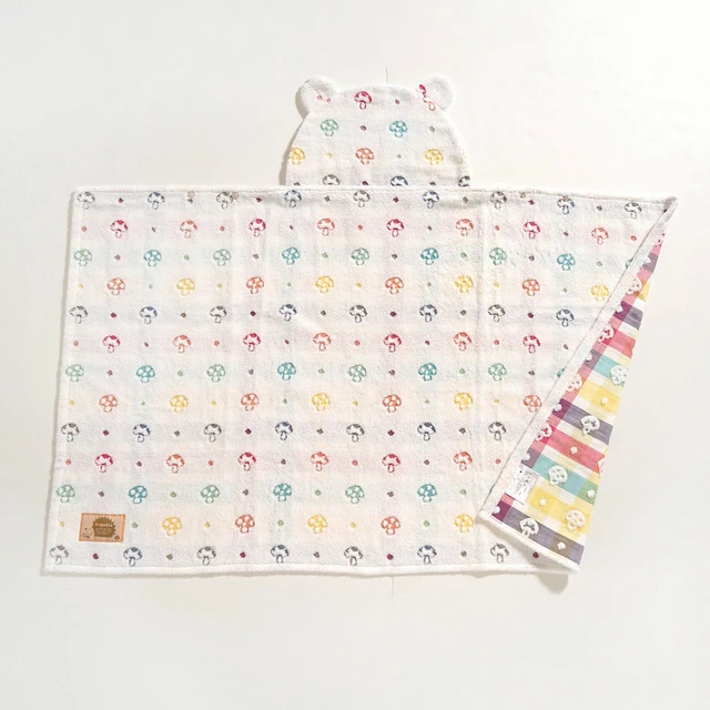 【Hoppetta】蘑菇熊耳朵連帽浴巾手帕禮盒組