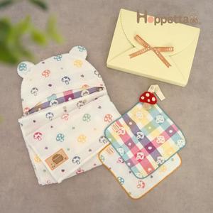 【Hoppetta】日本蘑菇六層紗睡袍新生兒彌月禮物袋組