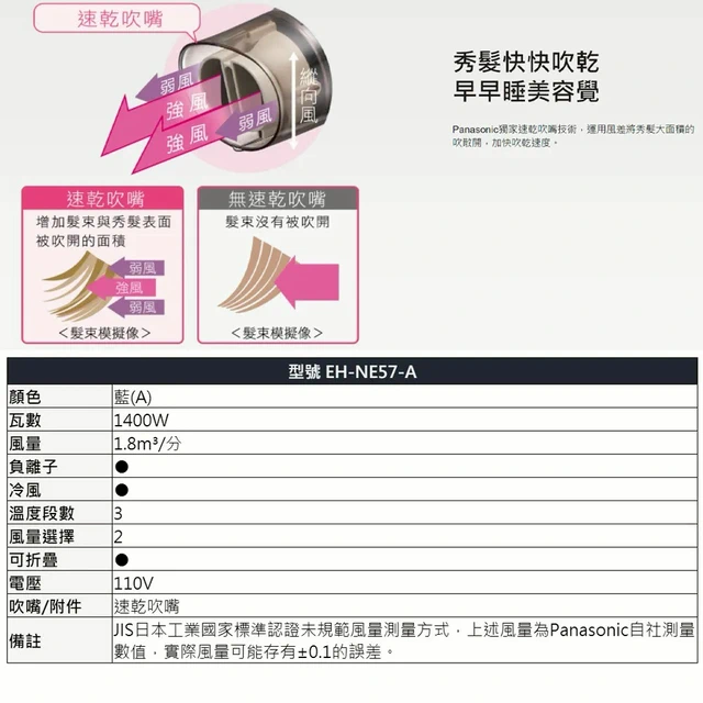 Panasonic 國際牌 負離子3段溫控折疊式吹風機 EH-NE14