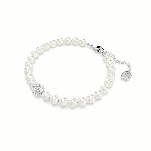 【SWAROVSKI 施華洛世奇】Una Angelic 手鏈 混合圓形切割 白色 鍍白金色 | 生日禮物 | 畢業禮物 | 情人節禮物