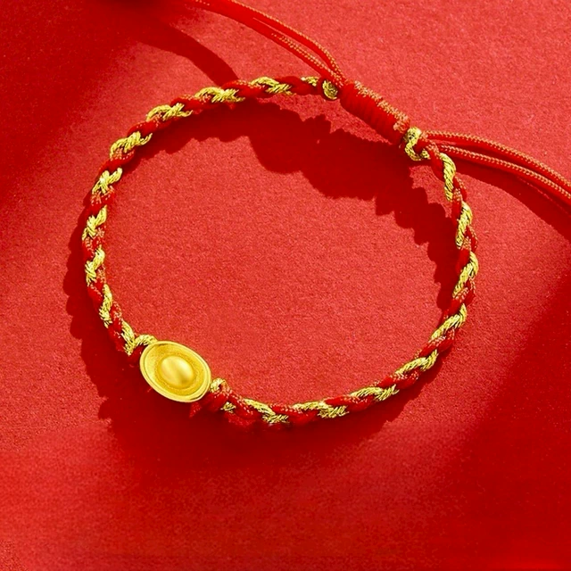 💝情人節快樂💝快速出貨【OCTOBER 16Th】黃金墜手鍊 999純金四顆小金珠情侶款編織紅繩手練 CRY1343 開運 生日禮物 情人節禮物 女友禮物 交換禮物 純銀手鍊 客製化禮物