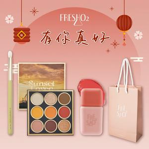 [快速出貨]【FreshO2】SUNSET LOVER 9色眼影盤+釉輕釉嫩小方塊+無畏懼眼影刷 唇釉 林倩聯名|生日禮物 送禮 新年彩妝福袋 情人節 畢業禮 聖誕 耶誕 紀念日 喬遷 交換禮物