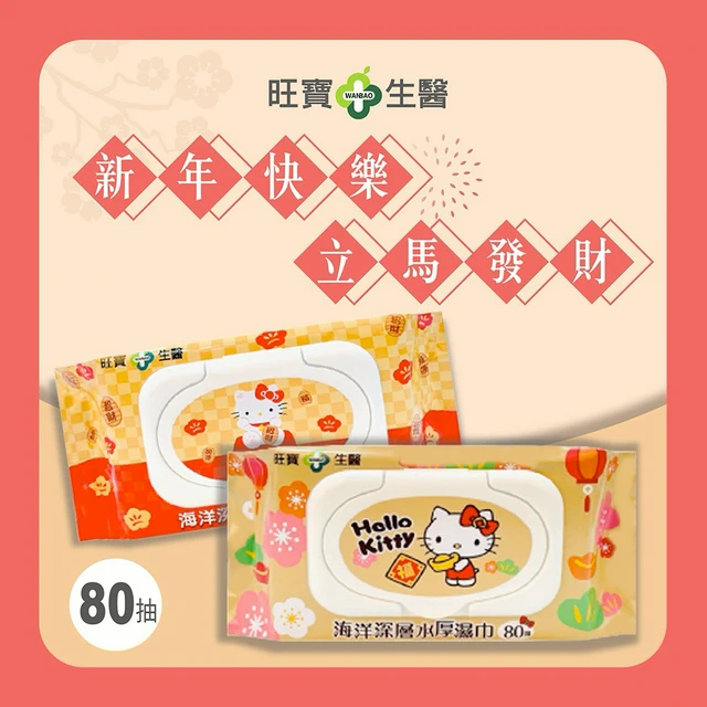 新年送禮【旺寶生醫】加厚純水濕紙巾(24包x1箱)-Hello Kitty 福氣元寶★新春送禮 新生禮 寶寶禮 獨家聯名