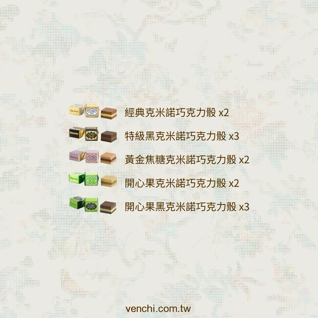 其他說明事項: 配送辦法 ・訂單商品皆採黑貓宅急便冷藏配送,完成付款後將儘速寄出。訂單會在系統確認後隔日工作天出貨(週五週末及國定假日除外)預計出貨後通常能於隔天到貨。若未在當天完成地址填寫則延後出貨,待填妥地址後下一個工作天出貨。 ・如遇特殊情況,請依最新公告為主。 ・若因成立訂單時未填寫收件者地址導致商品出貨時間延遲,恕不負責。 ・若適逢貨量較大的時節,如年節或國定長假,宅配時間較難指定,實際配送時間依物流公司時間為主,敬請見諒。 注意事項 ・送禮訂單,若在成立訂單時未填寫收件者地址,收件者可以至LINE禮物 /我的 / 我的禮物 / 點擊商品 / 填寫地址。若在成立訂單後10天內未填寫地址,則訂單將自動取消。 ・實際商品包裝可能與圖片不盡相同,請以實際收到的商品為主。 ・本產品為季節限定商品組合的特殊包裝服務。 ・包裝為選擇性服務,如果不需要包裝服務,請洽客服信箱: tw.customerservice@venchi.com ・如有任何爭議,Venchi Taiwan保留活動變更及解釋權利 ・期效高於30天為正常商品,可放心食用。 退換貨說明 ・如欲退貨,您可透過LINE禮物 / 我的 / 我的禮物 / 點擊商品 /「洽詢訂單問題」 提出取消要求給供應商。 ・本商品無法提供換貨服務,如需其他商品請您重新購買 ・本商品符合「通訊交易解除權合理例外情事適用準則」第二條第一項(易於腐敗、保存期限較短或解約時即將逾期之商品), 將排除7日解除權時,不再適用消費者保護法(以下簡稱消保法)第19條規定之7日解除權。因此不受理商品退貨,請確定本網站所販售食品是您需要的商品再進行下單。 商家資訊 公司名:香港商聞綺台灣有限公司台灣分公司 地址:台北市大安區敦化南路二段105號7樓 統一編號:97502057 負責人:MARCO GALIMBERTI 客服電話:(02) 2705-9000 #9258 客服信箱:tw.customerservice@venchi.com 客服時段:週一至週五 10:00-12:30 / 13:30-17:00