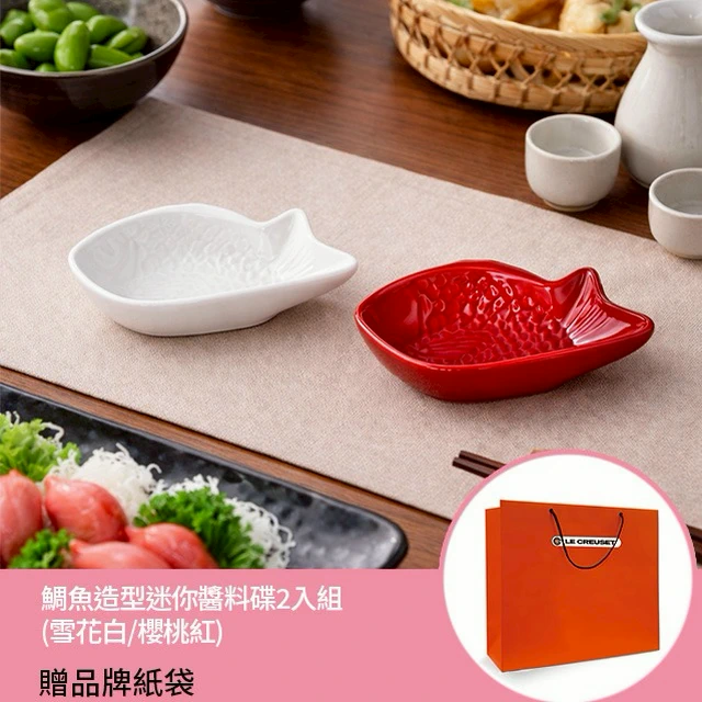 Le Creuset-瓷器富士山造型迷你醬料碟2入組 (晨霧藍/晨曦橘)