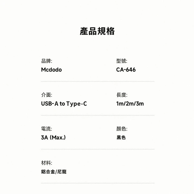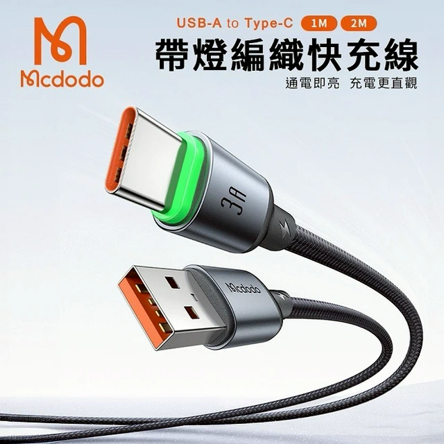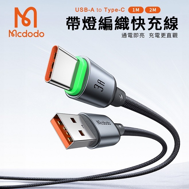 【Timo禮品館】MCDODO麥多多 Buy easy系列 3A USB-A to Type-C 帶燈編織快充傳輸線(CA-6462)(3M)