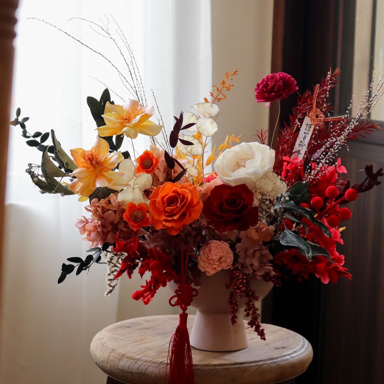 【遇見恆久】紅影和雅日本進口永生花籃 新年花禮