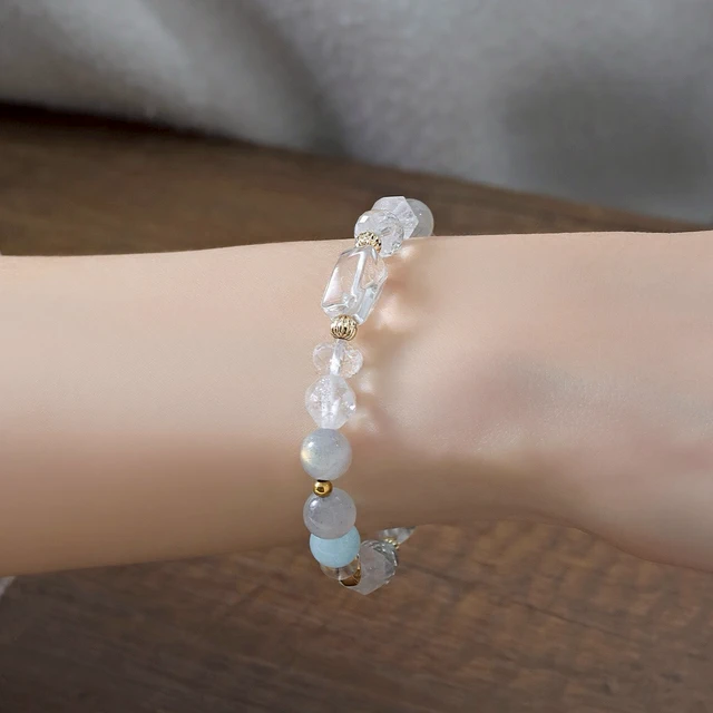 【SPANCONNY】銀色浪漫 | 粉水晶 藍紋瑪瑙 海藍寶 白水晶 | 天然水晶手鍊