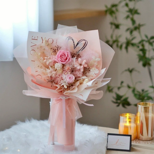 把愛送給妳1+1組合【Floral M】優雅法式女神永生花束(贈送5ml香氛油)水瓶座生日花束 情人節花束