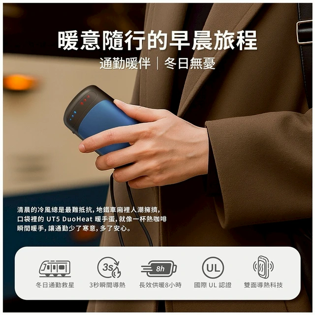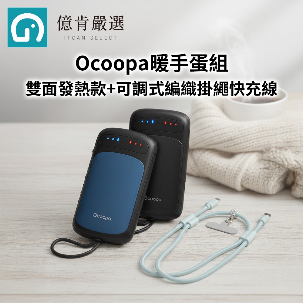 【億肯嚴選】Ocoopa暖手蛋貼心不落組-輕巧美型款+可調式編織掛繩快充線