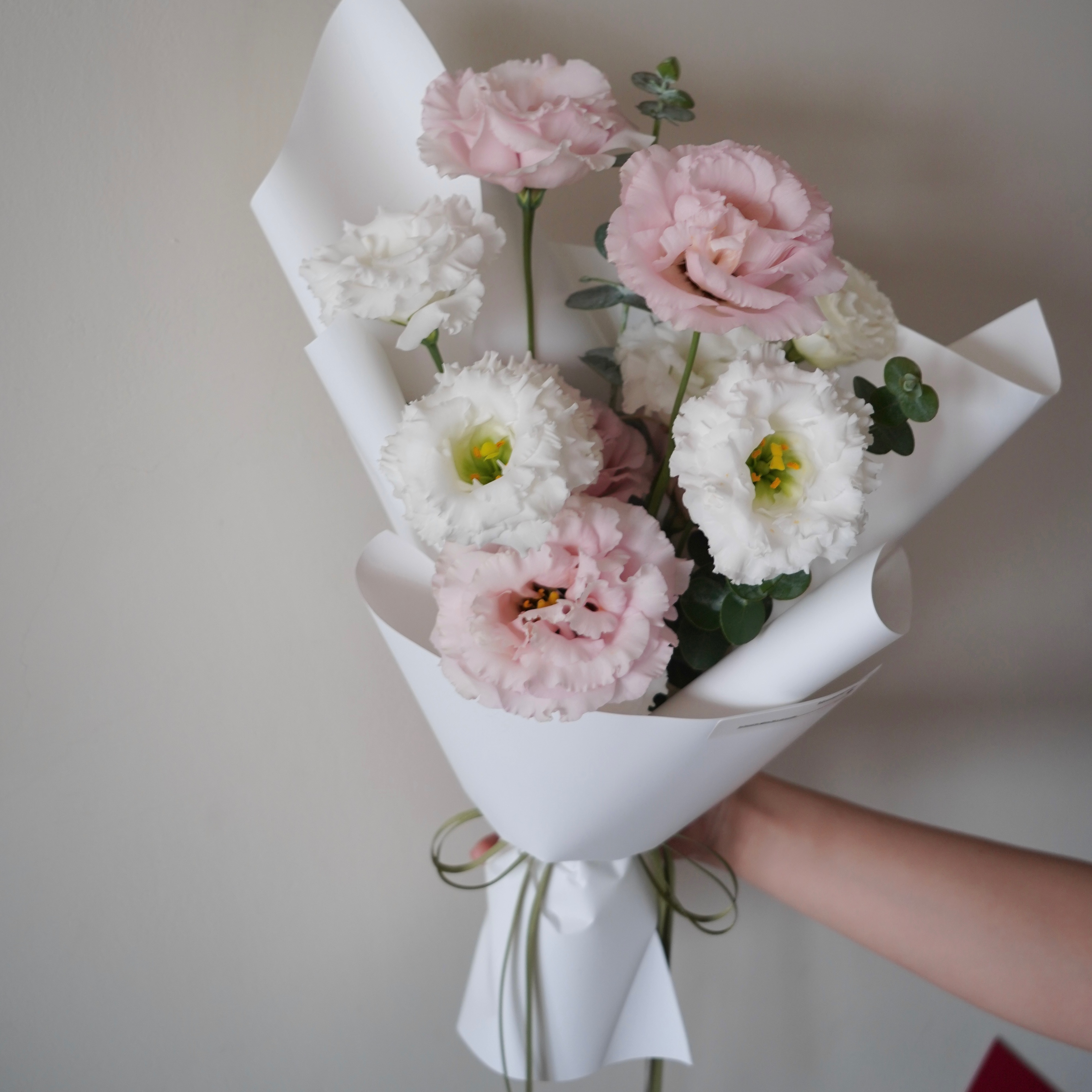 【ELLESHOP】 生日禮物、畢業花束、告白禮物❤️ (限雙北配送) 白色花藝-康乃馨鮮花束-溫柔粉