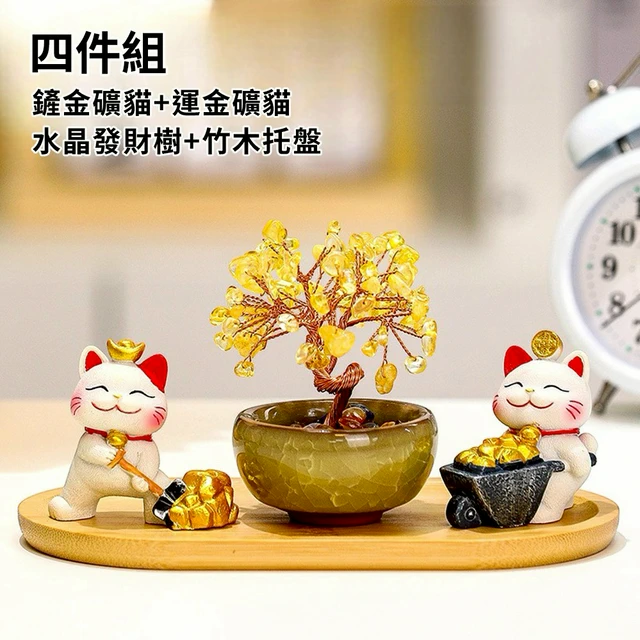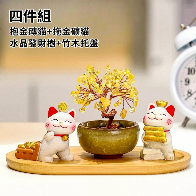 🐎新年快樂🔜 快速出貨【招財貓的家】5寸天然水晶發財樹金磚樹招財貓2件組 生日禮物 開業禮物 開運 招財 喬遷禮物 交換禮物