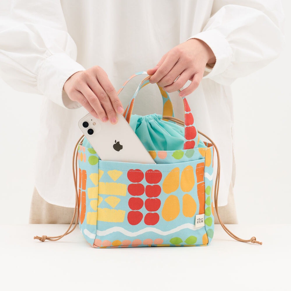 【印花樂】花布小書袋/山林朋友/橘藍