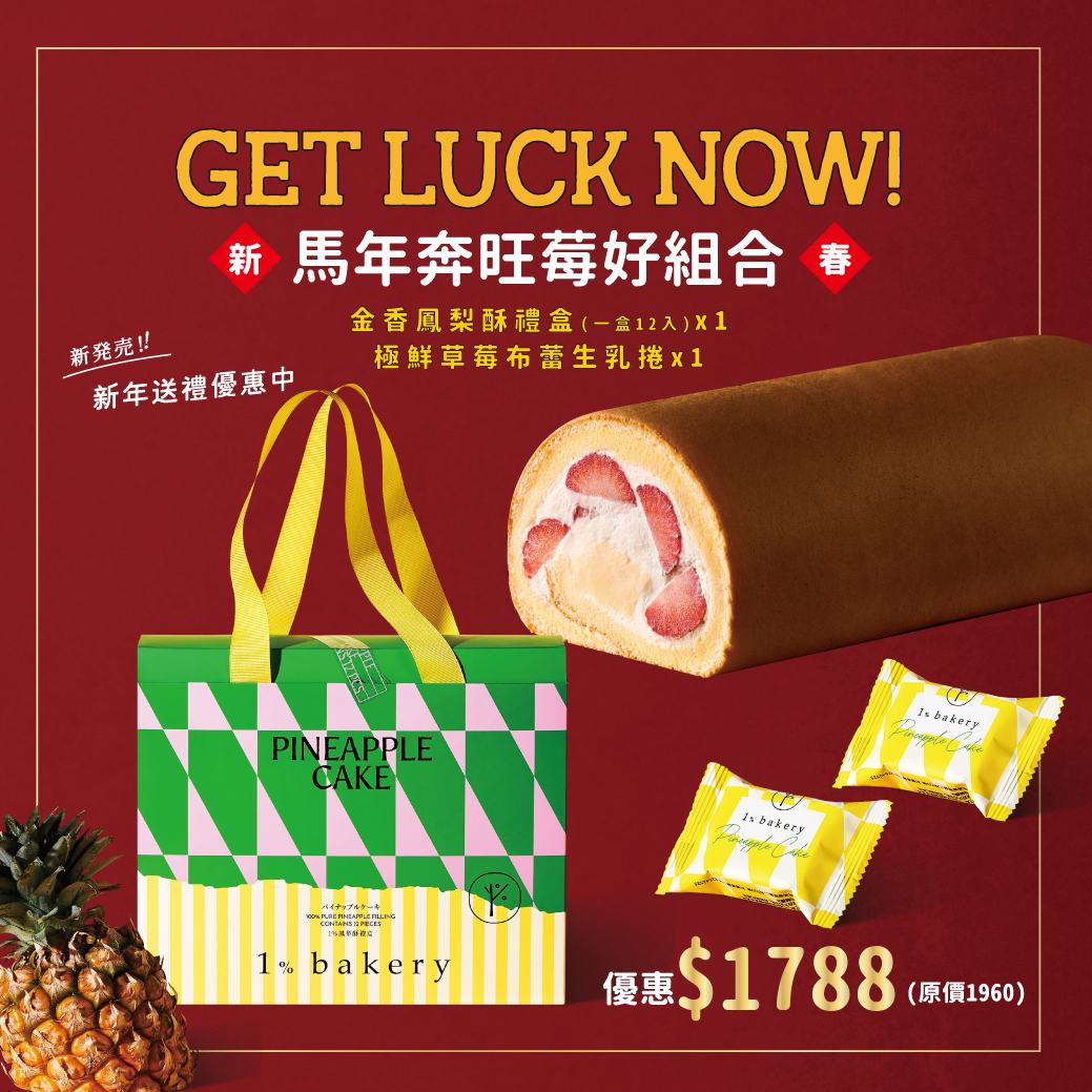 🐴🍓[春節人氣果香禮盒組]指定期間出貨 【1%bakery】金香鳳梨酥禮盒(一盒12入)x1+鮮綠檸檬蛋糕禮盒(一盒8入)x1(僅冷藏寄出,最後出貨日2/11)