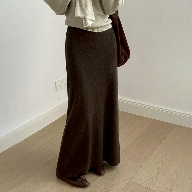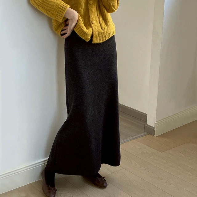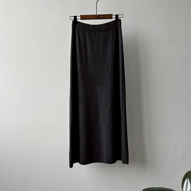 💜新品上架【梨花瑪雅】氣質名媛法式優雅星光人字紋直筒修身灰色毛呢長裙(七尺碼)