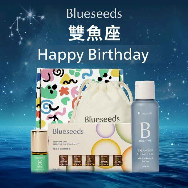 【Blueseeds】雙魚座生日快樂 l 可任選精油噴霧 l 雙魚座滾珠精油2ml+任選精油噴霧30ml+精油滾珠2ml/5支 l 芙彤園