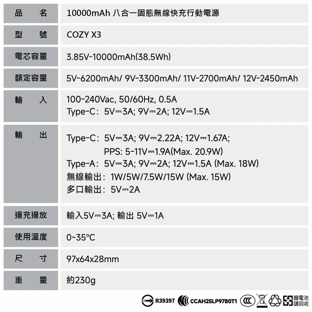 阿愣雙11 優惠券 天蠍座 VIP 好禮 ! 超安全防爆!CCC認證 固態鋰電池 COZY POT-489 固態3C超薄磁吸行動電源 10000mAh