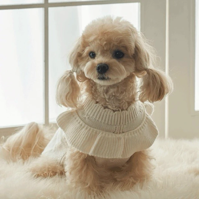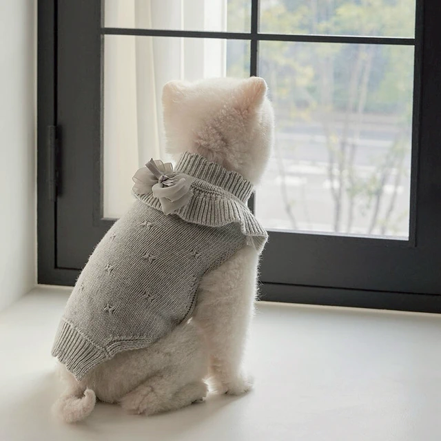 韓國品牌 ❗ 獨家販售❗【梨花娘】🐾BAILEY 🐶秋冬新品 山茶花刺繡方形領口粗花編織保暖針織寵物服飾(2色)