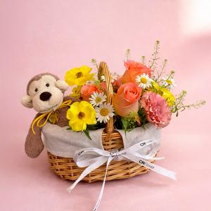 Jellycat聯名花禮【CNFlower】春日綺想 提籃花(Jellycat猴子18CM) 組合花禮 鮮花 驚喜 祝福