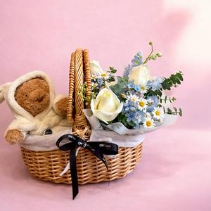 Jellycat聯名花禮【CNFlower】熊熊愛上你 提籃花(Jellycat浴袍巴賽羅熊) 組合花禮 鮮花 驚喜 祝福