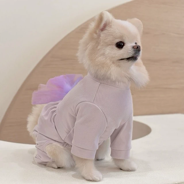 韓國新品上架【梨花娘】🐾BAILEY 🐶秋冬新品 針織拼接蕾絲氣質優雅花朵芭蕾舞裙寵物服飾(2色)