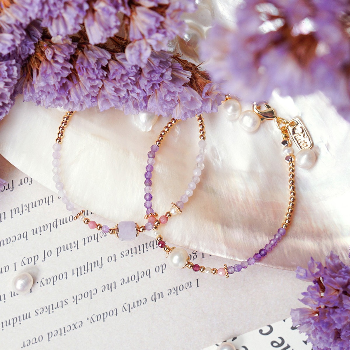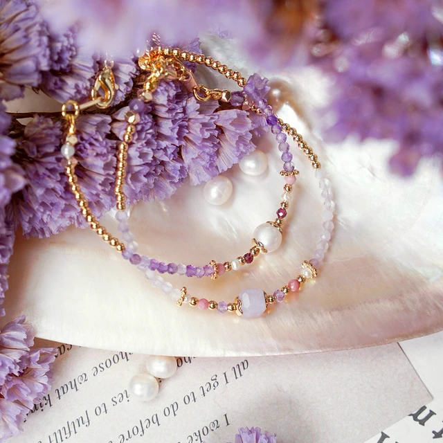 【Ficelle輕珠寶】世界盡頭的戀人| 紫水晶 珍珠 粉貓眼石 黃水晶 堇青石 白水晶 黃銅鍍18K金 雙層手鍊