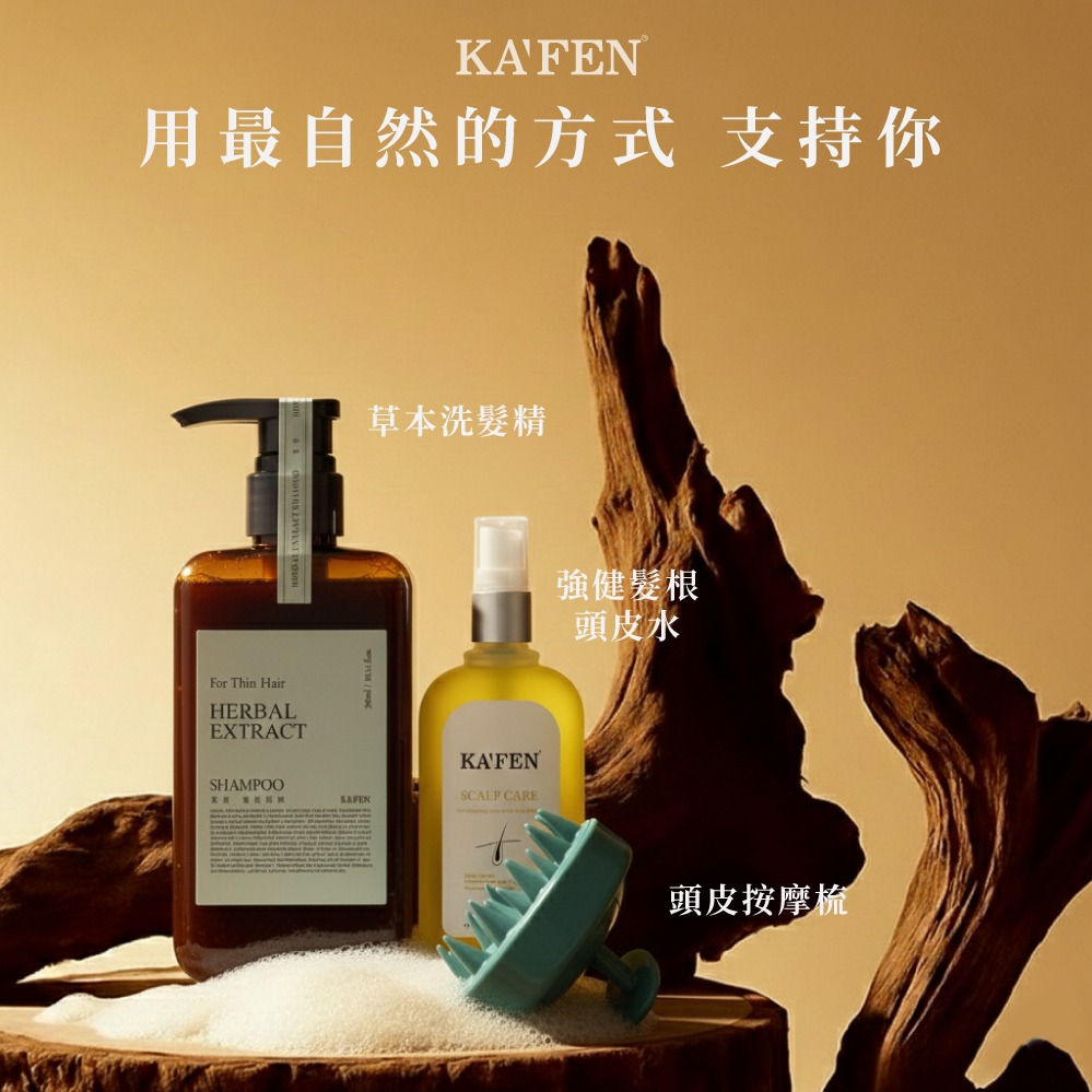 給你最用心的呵護 - 快速出貨⚡結構式洗髮 健康頭皮養成 【KAFEN卡氛】療癒草本系列洗髮精(300ml) |3入|贈 頭皮精華液(15ml)2入+贈限量桃紅提袋
