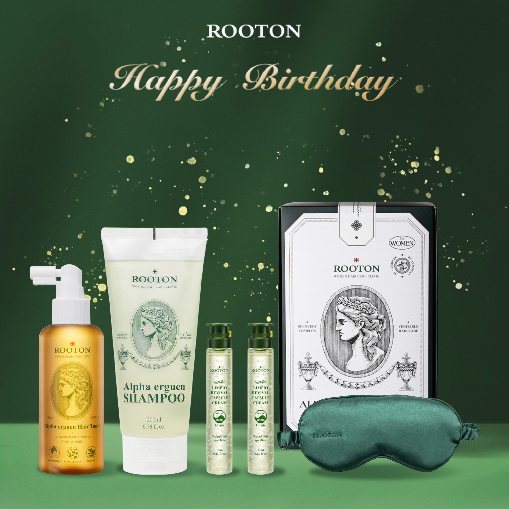 快速出貨【ROOTON】生日快樂!植萃洗髮精200ml+植萃洗髮精70ml+海藻洗髮精70ml+頭皮按摩梳+沐浴膠10ml x2+身體乳10ml x2+植萃手提禮盒(雙魚座生日禮物)
