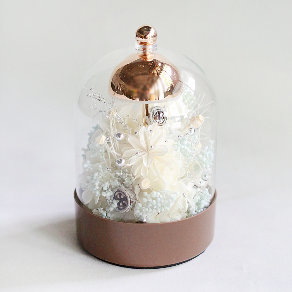 【花意空間 Flower Space】 風鈴玻璃盅檯燈 - 爵士白 | 永生花《全台配送》情人節快樂