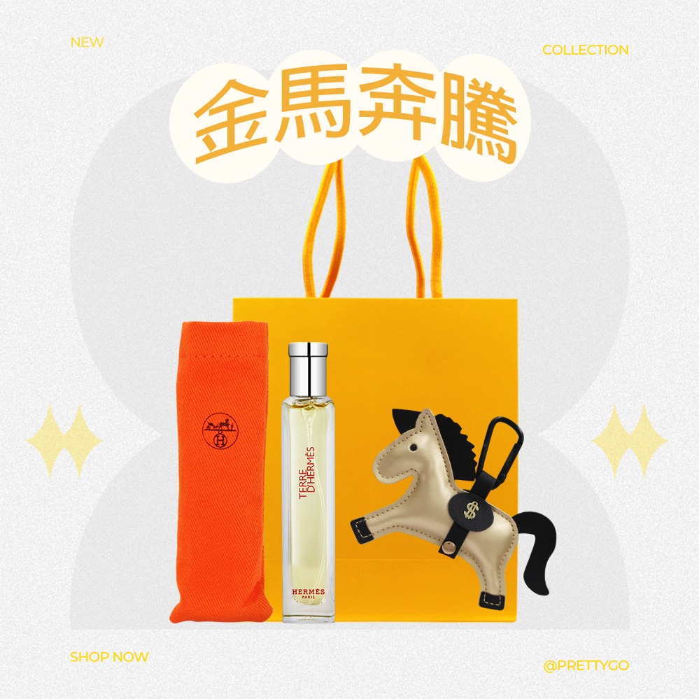 【HERMES 愛馬仕】新年快樂 馬上好運香氛禮-可自選香味+皮革小馬吊飾+好運繽紛禮袋