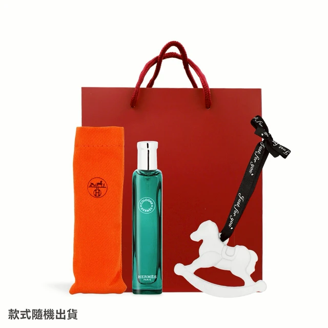 【HERMES 愛馬仕】新年快樂 馬上好運香氛禮-可自選香味+皮革小馬吊飾+好運繽紛禮袋