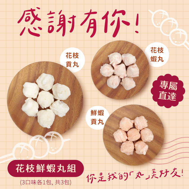 【一夫水產】新年快樂花枝鮮蝦丸組(花枝貢丸.花枝蝦丸.鮮蝦貢丸)|感謝禮 免運配送 火鍋好料
