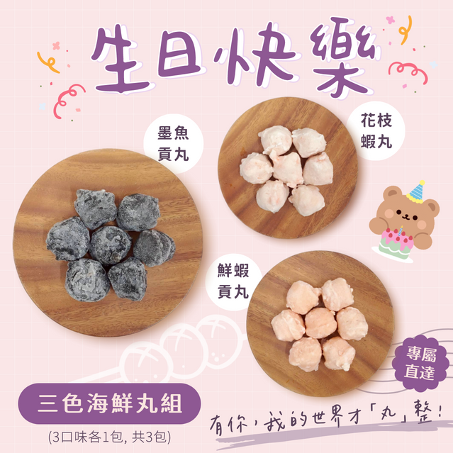 【快速到貨】【一夫水產】新年快樂花枝鮮蝦丸組(花枝貢丸.花枝蝦丸.鮮蝦貢丸)|感謝禮 免運配送 火鍋好料