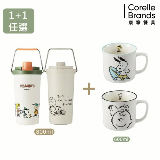(加贈杯刷)買1送1【美國康寧 Snapware】SNOOPY史奴比 鋅動輕瓷不鏽鋼隨行保溫杯500ml/燜燒罐580ml