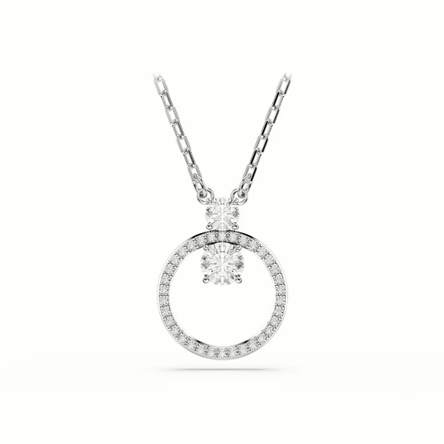 【SWAROVSKI 施華洛世奇】Una Angelic 鏈墜 圓形切割 白色 鍍白金色 | 生日禮物 | 畢業禮物 | 情人節禮物 | 限時贈吉米小卡