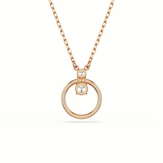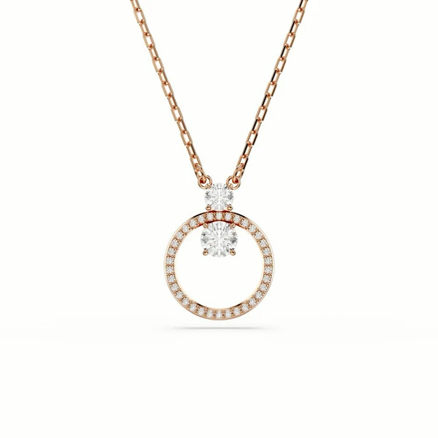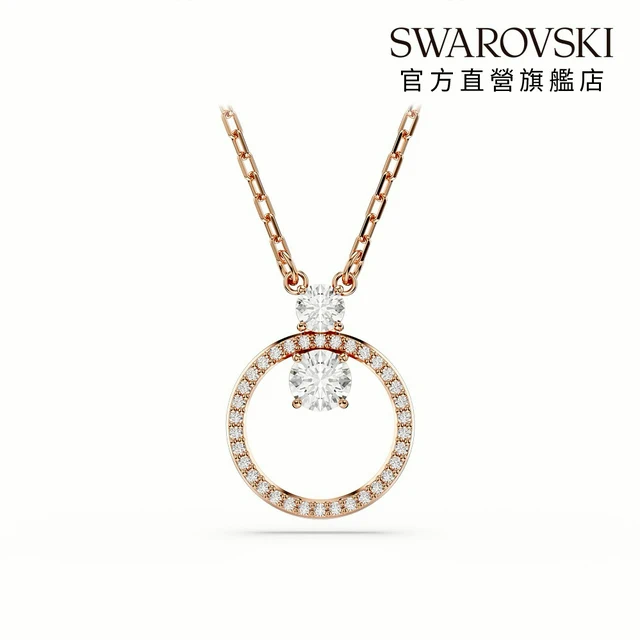 【SWAROVSKI 施華洛世奇】Una 項鏈 圓形切割 橢圓形 白色 鍍玫瑰金色調 | 情人節禮物 | 生日禮物
