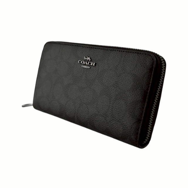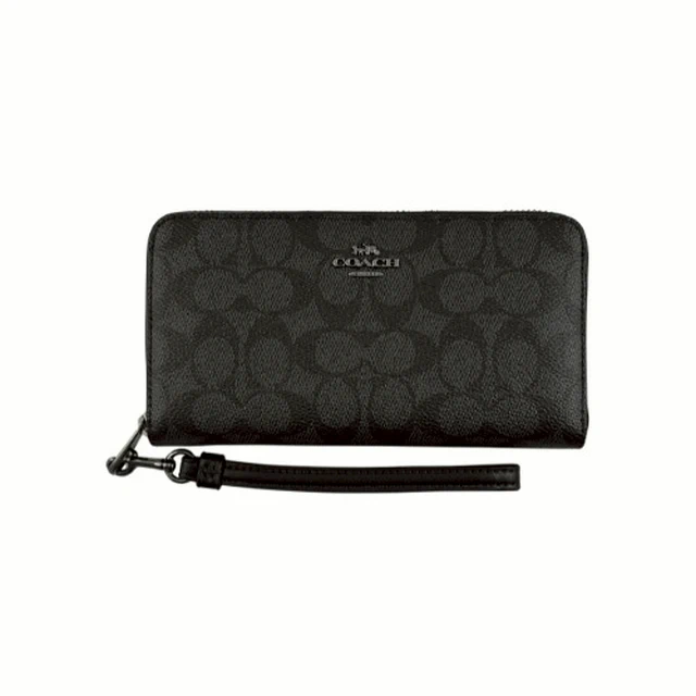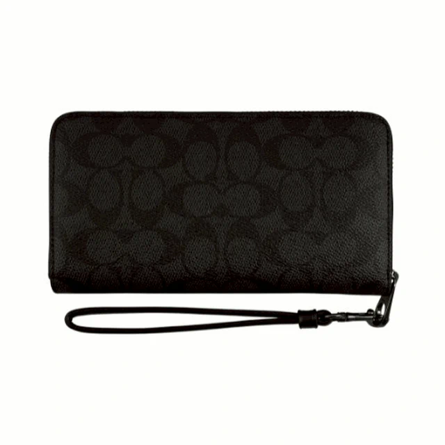 [平輸版] 【COACH】C LOGO壓印黑色荔枝紋皮革手掛拉鍊長夾 真品平輸