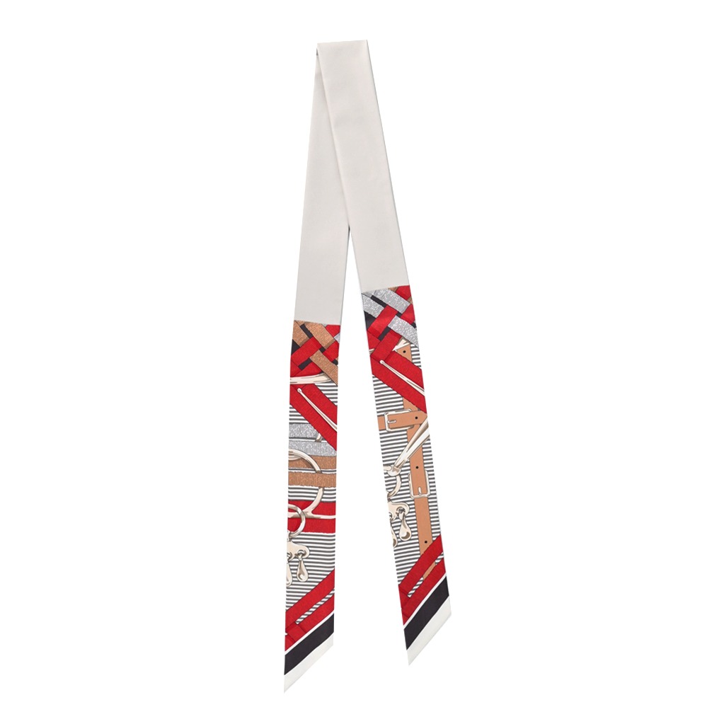 [平輸版] Hermes 愛馬仕 Equateur Twilly絲巾(奶油色/綠色/多色)