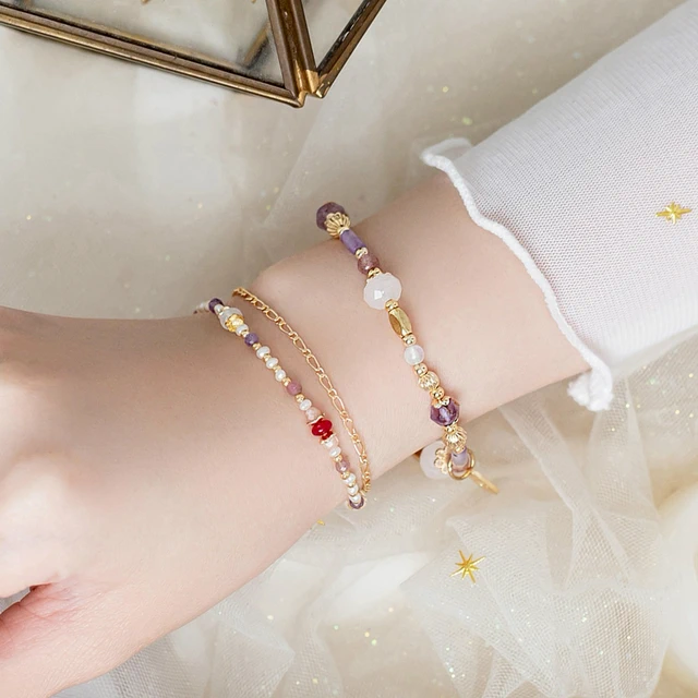 【Ficelle輕珠寶】十月誕生石 • 風信子 • 重生的愛| 粉碧璽 淡水珍珠 誕生石 生日石 黃銅鍍18K金 手鍊