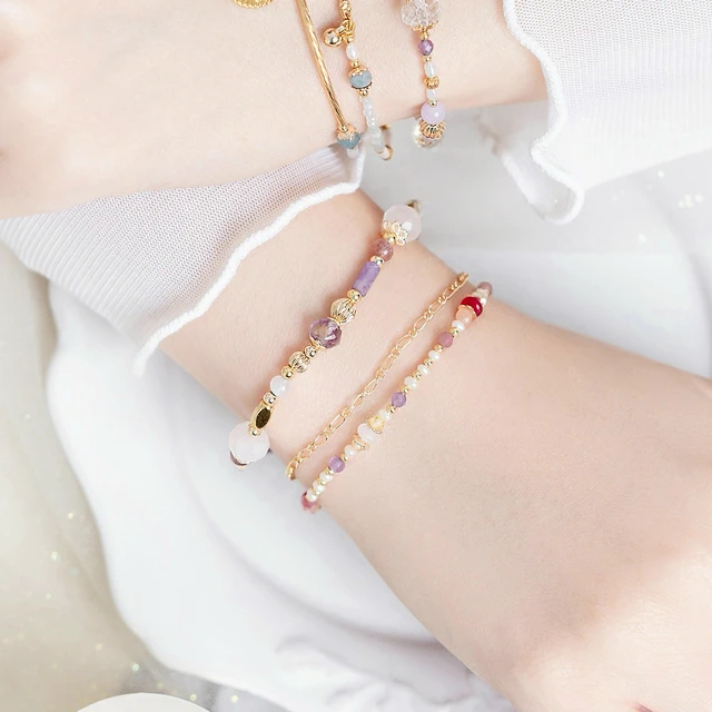 【Ficelle輕珠寶】南島花開的記憶| 黃水晶 黃玉 茶晶 白水晶 水草瑪瑙 淡水珍珠 黃銅鍍18K金 彈性繩手鍊