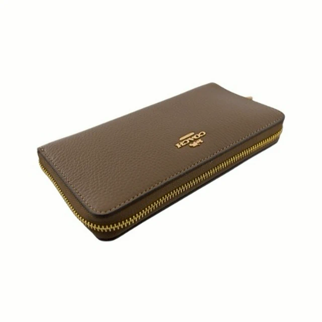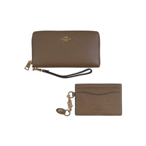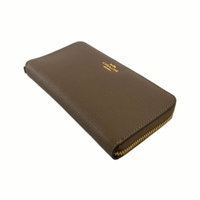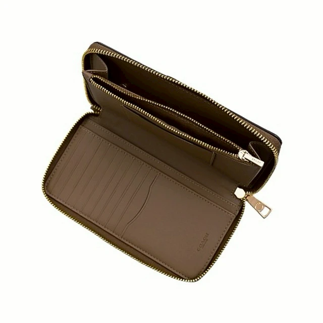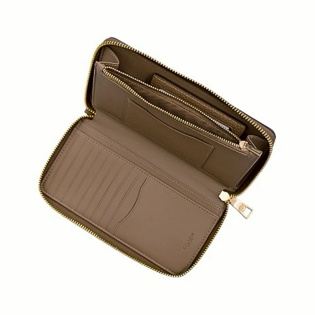 [平輸版] 【COACH】沙色C LOGO PVC附活動卡夾皮革手掛帶拉鍊長夾 真品平輸
