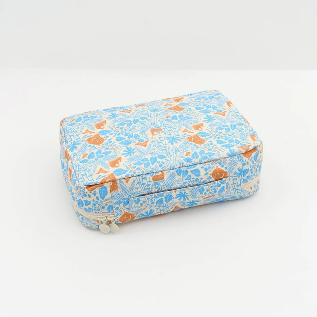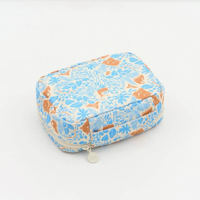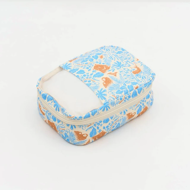 【印花樂】拉鏈梯形收納包/山林朋友/橘藍